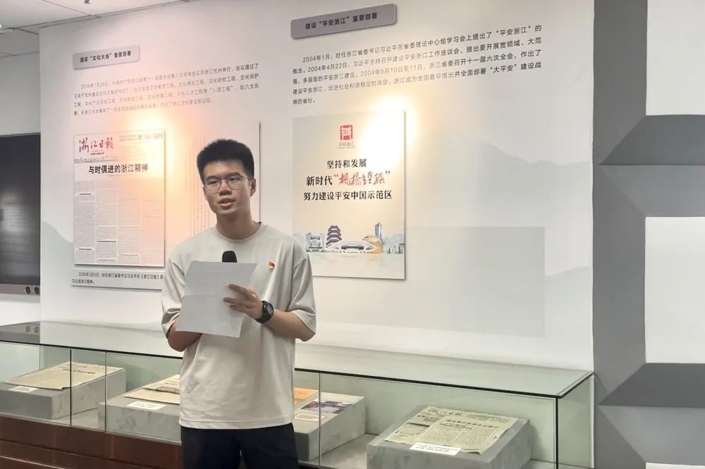 2020级研究生党员卢观铤从1920年9月出版的陈望道翻译的《共产党宣言》出发,用情至深地讲述了张人亚同志和他父亲守护党章的故事。他认为,寻访张人亚的过程也是寻找初心的过程。危急关头,张人亚首先想到党的文件和马克思主义书刊的安危,就像是一位红色火种的守护者,用生命捍卫信仰。作为新时代的党员,我们初心如磐,使命在肩,共产党人永远热血澎湃!